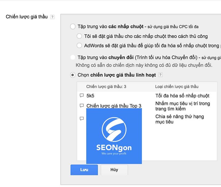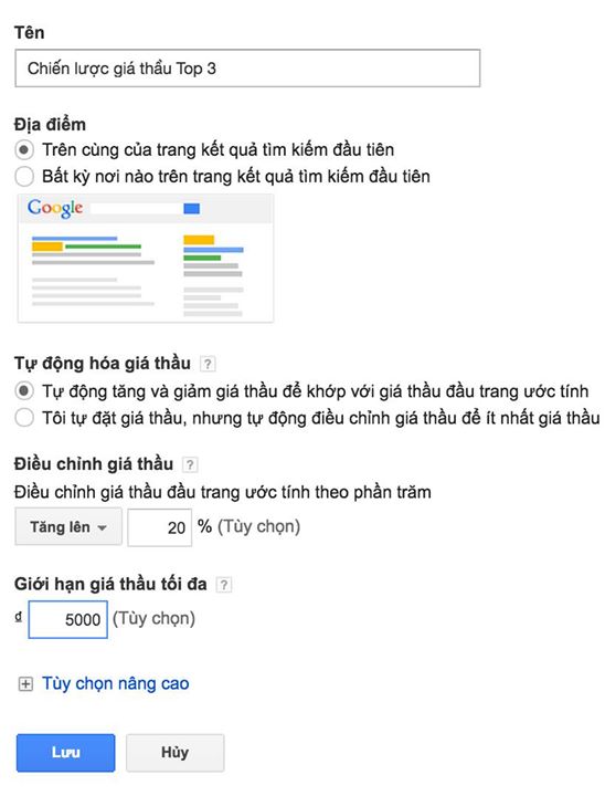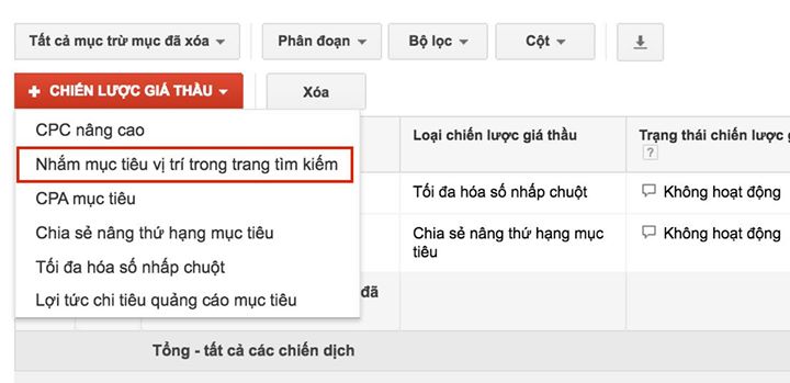 Cách 2: Sử dụng Chiến lược giá thầu (hơi nâng cao chút)