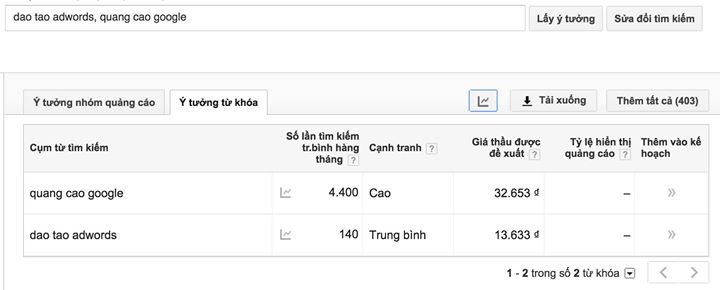 Tuy nhiên khi bid giá theo các giá trị này thì chưa chắc các bạn thấy quảng cáo nằm trong top. Vì đơn giản đây là dữ liệu trong quá khứ, các nhà quảng cáo thay đổi giá bid liên tục nên khi bạn bid có thể giá đã tăng.