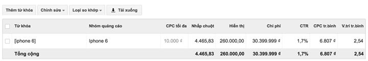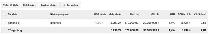 – Click thu về chuyển đổi thành càng nhiều đơn hàng càng tốt. Vấn đề này thực sự đâu đầu. Thông thường các bạn có xu hướng lựa chọn các từ khoá mà các bạn nghĩ ra trong đầu (bán iphone thì từ khoá muốn quảng cáo là iphone 6, bán ô tô thì từ khoá muốn quảng cáo là ô tô Toyota …). Như vậy không tốt, các từ khoá bạn nghĩ ra thường là từ khoá chung chung ai cũng nghĩ ra nên nó đắt, người tìm chung chung lại chưa mua hàng mà họ còn mất nhiều thời gian nghiên cứu. Những người tìm từ khoá “iphone 6 16gb trắng” sẽ tiềm năng hơn nhiều.