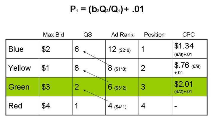 Xem “công thức” tính Ad Rank (Công thức này cũ, nhưng chủ yếu là theo cách tính này)