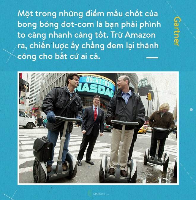 Đúng vậy, dot-com là một thời đại quá đặc biệt trong cả lịch sử nước Mỹ. Nỗi sợ hãi và tò mò dành cho Internet cũng như sự cố Y2K đến gần đưa nhu cầu đầu tư vào hạ tầng IT tăng cao đột biến, cùng lúc các đột phá của Netscape và Internet Explorer cũng như định luật Moore giúp Internet trở thành sân chơi “mở” của hàng triệu người. Những ấn tượng mơ hồ về Internet thời đại mở cửa khiến cho hàng loạt startup ra đời với những mô hình hoạt động hoàn toàn xa rời thực tế, các nhà đầu tư mờ mắt chạy theo các IPO có giá trị “ảo” mà không nhận ra rằng nguồn vốn, nguồn lực con người là cực kỳ giới hạn.