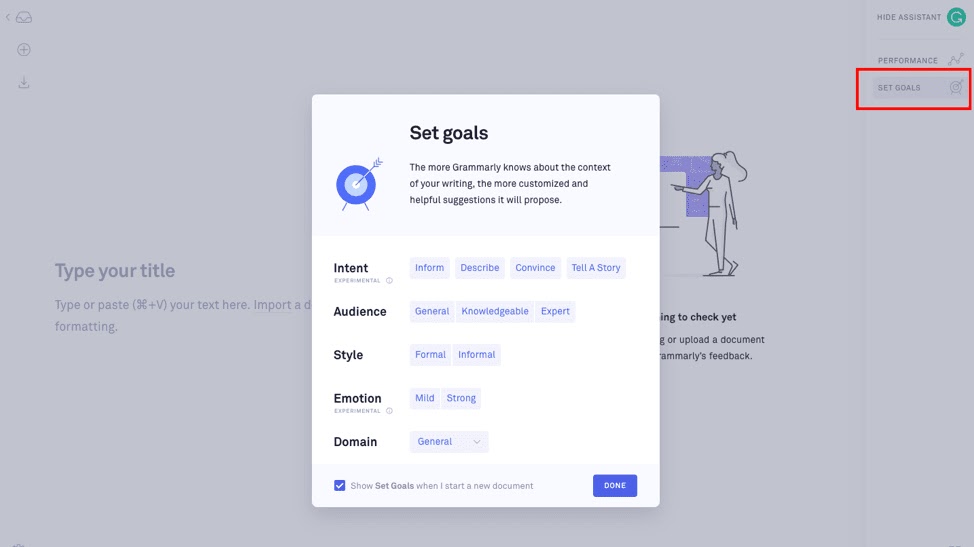 Cho dù bạn là người giao tiếp tốt, nhà văn chuyên nghiệp, người mới bắt đầu hay người nói tiếng Anh không phải là người bản xứ, Grammarly đều đáp ứng được nhu cầu của bạn. Nó cho phép bạn cá nhân hóa tài khoản của mình theo trình độ kỹ năng viết, loại công việc bạn làm và lý lịch của bạn. Bằng cách tận dụng các tùy chỉnh tài khoản Grammarly của mình, bạn có thể điều chỉnh tài khoản Grammarly của mình sao cho tài khoản đó hoạt động tốt nhất cho bạn dựa trên những điều sau: