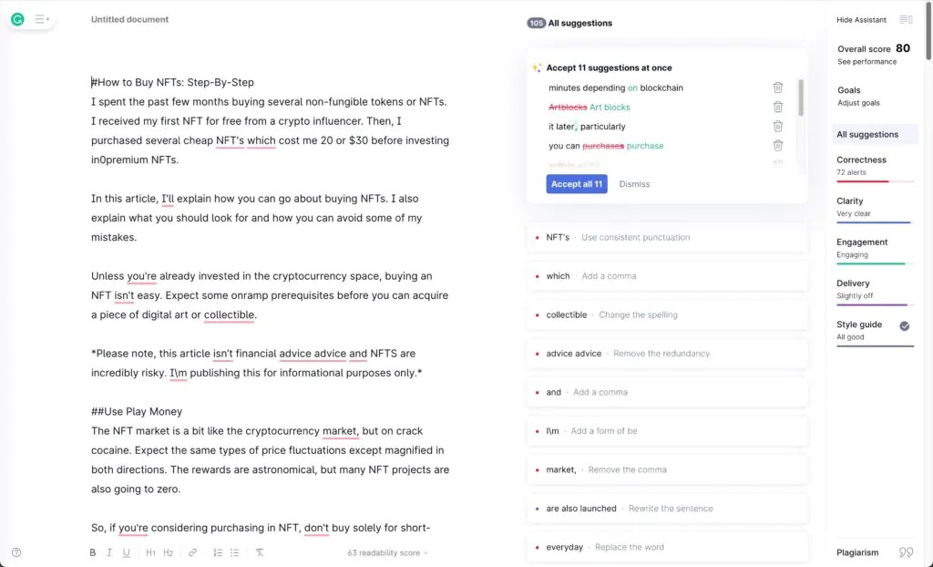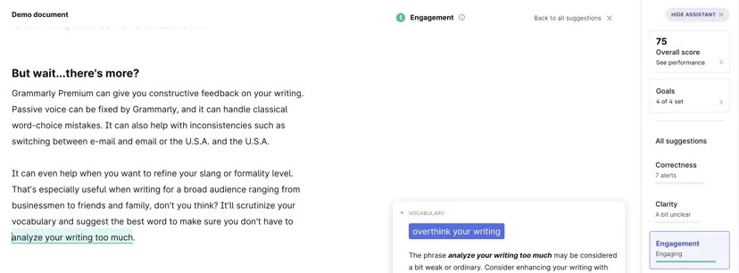 Không chỉ vậy, nó còn đưa ra các gợi ý về cách chọn từ tốt hơn, cách xây dựng câu,… Tùy thuộc vào loại tài khoản bạn có, nhờ đó tinh chỉnh chất lượng nội dung của bạn đồng thời hướng dẫn bạn cách cải thiện kỹ năng viết của mình.