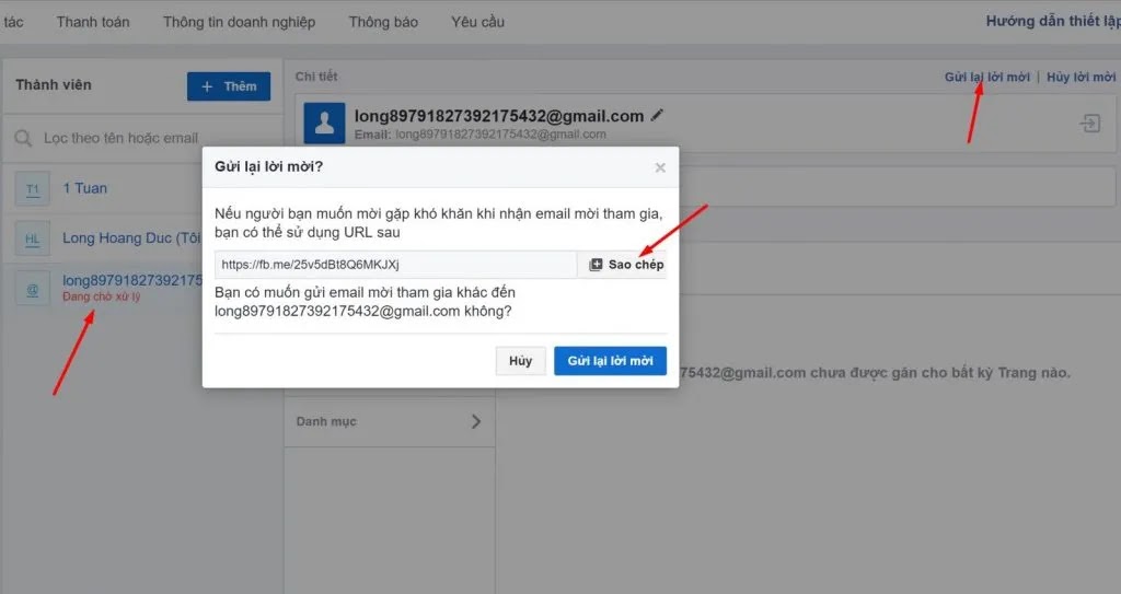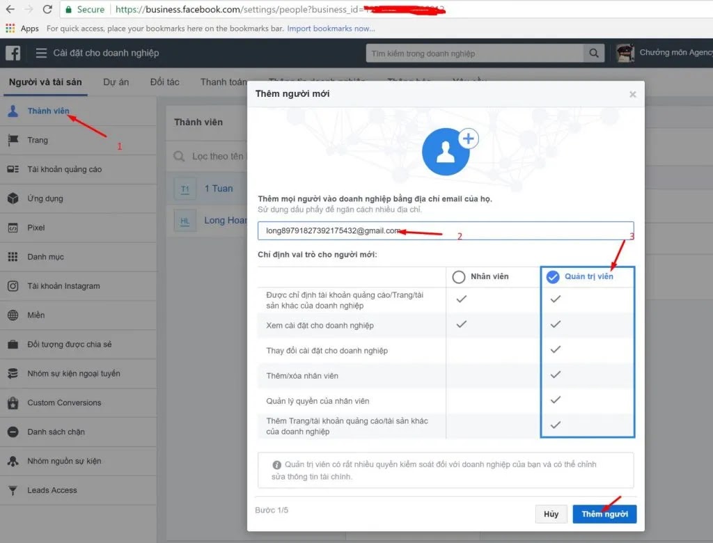 Bước 1. Tạo link fb.me: Trong BM bạn chọn phần Thành Viên —> Thêm Người và làm theo hướng dẫn