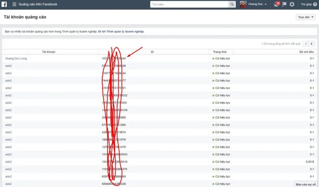 Đồng thời, tôi đưa 1 IDBM quản lý cho các nhân viên, yêu cầu nv làm xong con nào thì gán đối tác sang IDBM của tôi, lúc này thì dưới tài khoản ads sẽ có dòng ( tk ads 1 thuộc sở hữu của M07_K03_38_Toan )
