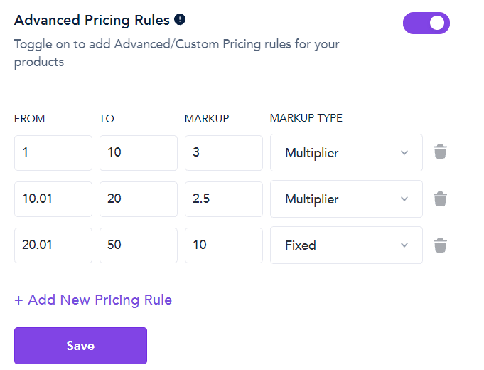 Bạn có thể đặt giá bán thủ công đối với từng sản phẩm hoặc đặt giá tự động dựa vào công thức tính lợi nhuận mà bạn mong muốn.