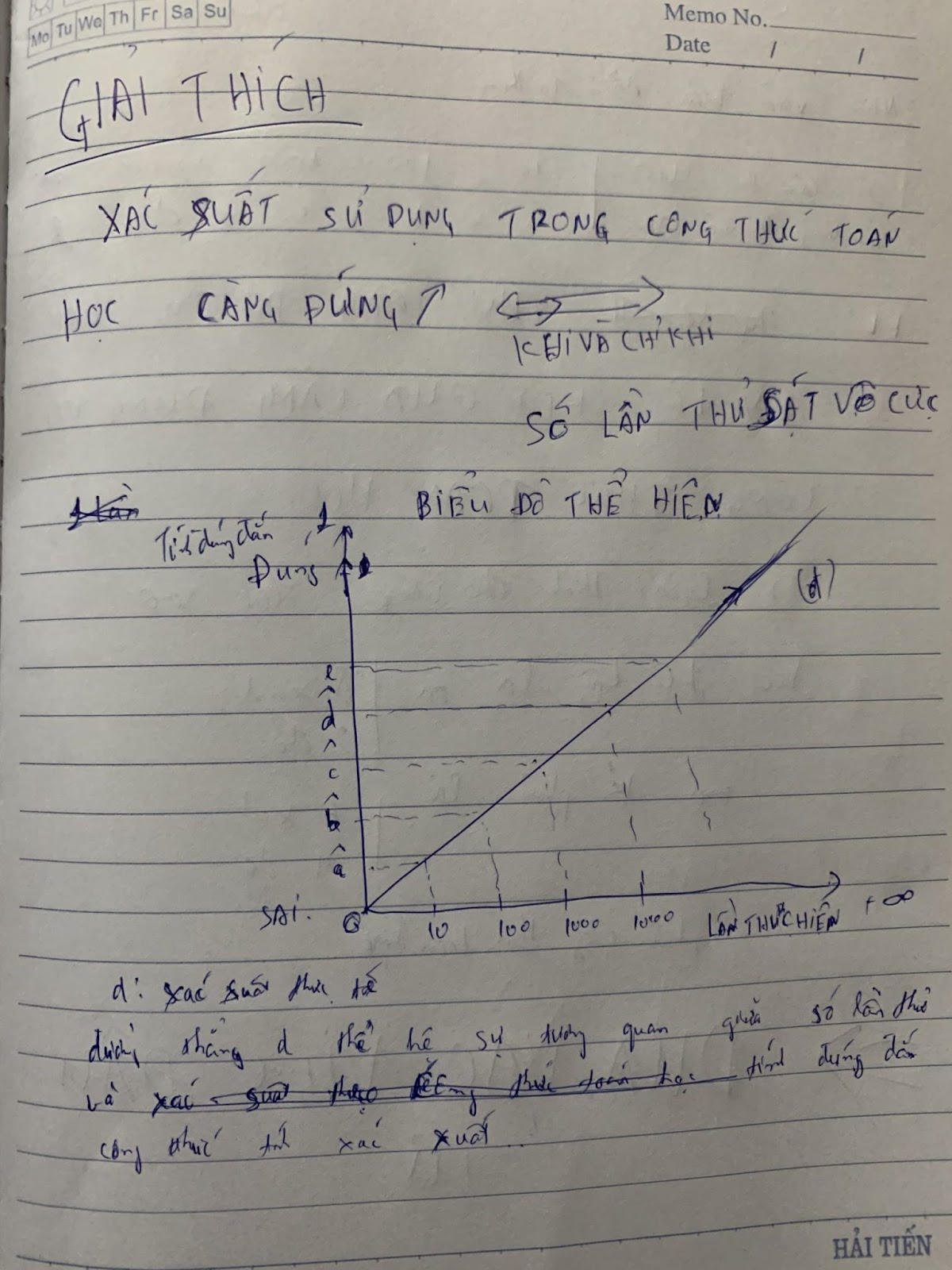 Xác suất sử dụng trong công thức toán học càng đúng khi số lần thử càng tăng và đúng nhất khi số lần thử tiến đến vô cực.